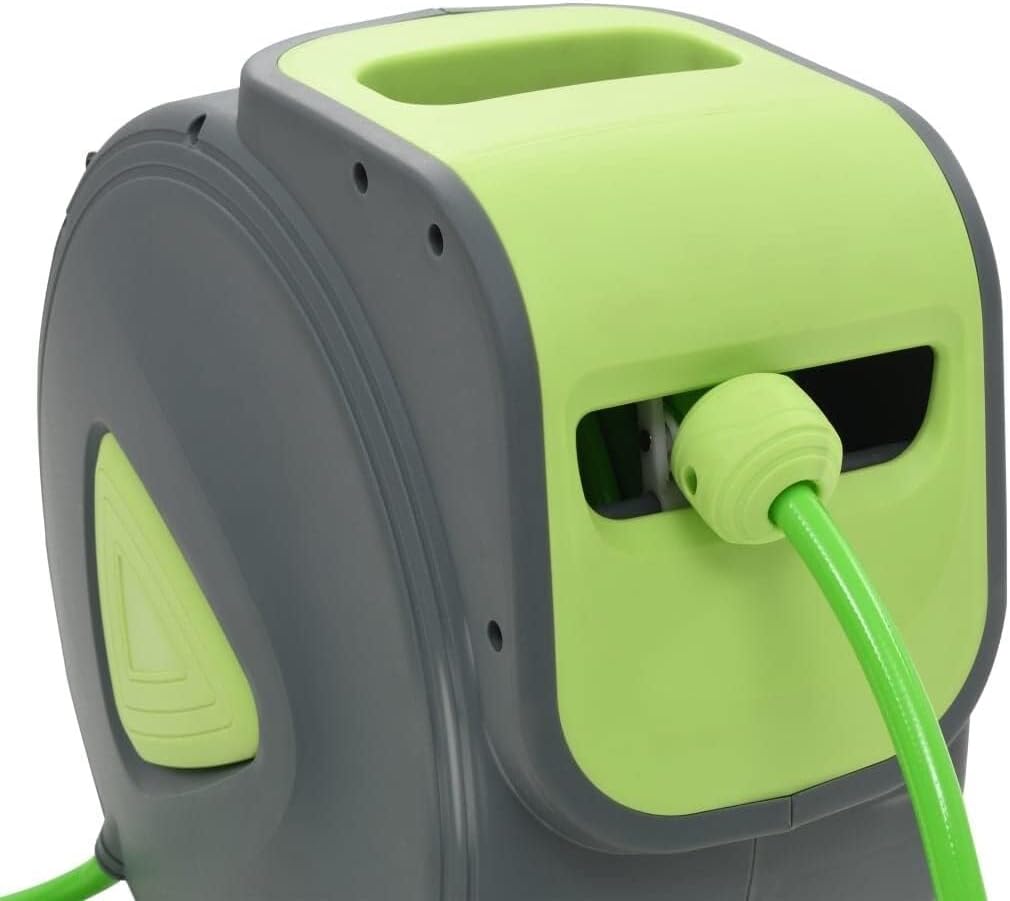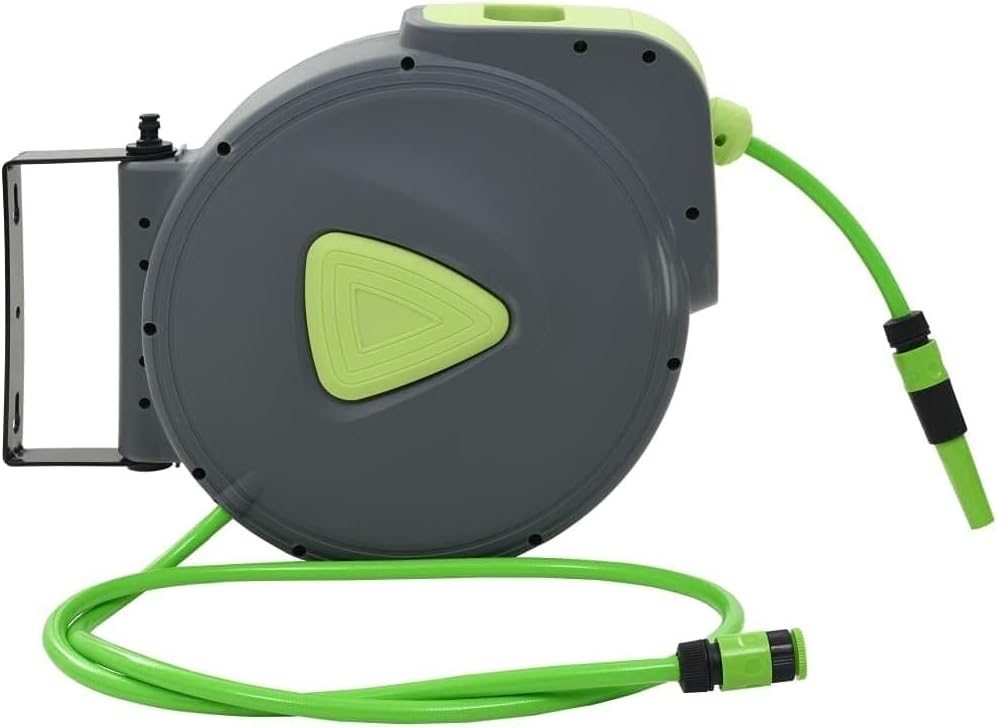 Make outdoor watering and cleaning easier and more efficient with this Automatic Retractable Wall-Mounted Garden Hose Reel. Pre-loaded with a 30-meter PVC outlet hose and a 2-meter inlet hose, this hose reel offers long reach for gardens, patios, irrigation, and vehicle cleaning.The automatic winding mechanism allows you to effortlessly retract the hose with a smooth, controlled pull and lock function to stop the hose at your preferred length, eliminating tangles and clutter. The hose reel’s 180-degree swivel wall mount provides flexible positioning, so you can easily direct water where you need it most.Constructed with tough polypropylene housing, the reel protects your hose from dirt and damage while keeping your outdoor space neat. Included spray nozzle features adjustable water flow, giving you full control for watering plants, washing cars, or cleaning surfaces.Upgrade your garden watering setup with this practical, space-saving retractable hose reel for reliable and convenient water management.