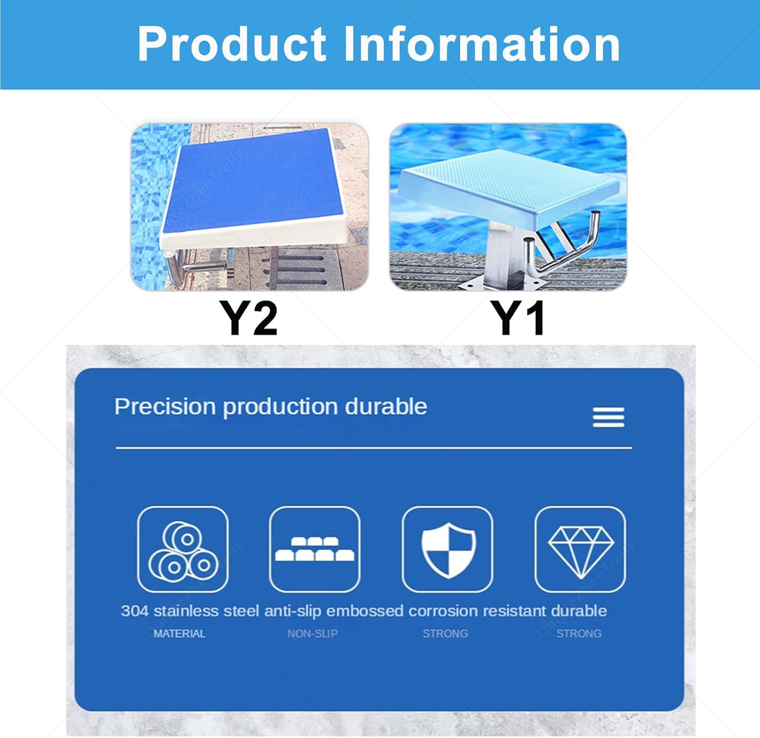 Professional-grade pool diving platform—make every plunge into the water an art form!★【Installation steps】:1: Select the installation location and mark the four screw positions.2: Drill holes according to the marks.3: Insert the expansion screws into the drilled holes.4: Tighten the expansion screws to secure the platform base (wrench not included).★【Specifications】:Product Name: Pool Diving PlatformMaterial: 304 Stainless SteelTilt: 15 degreesPackaging Dimensions:53 x 42 x 52 cm (Y1)( 20.9 × 16.5 × 20.5 inches)53 x 33 x 53 cm (Y2)( 20.9 × 13.0 × 20.9 inches)Packaging Weight:9 kg (Y1)( 19.8 lbs)11 kg (Y2)(24.3 lbs)Load Capacity: 200 kg/440 lbs★【Package Contents】:1 x Diving PlatformScrews★【Note】:If the screws loosen during use, tighten the nuts to keep the bracket stable.Actual color may vary slightly due to lighting and monitor effects. This is normal.If you have any questions, please contact us and we will respond to you within 24 hours.