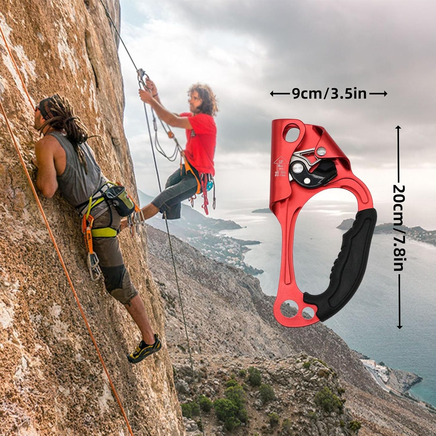 Features1. Whether You Are A Novice Or An Experienced Adventurer, Our Hand Ascender Will Become An Indispensable Partner On Your Climbing Journey. Hurry Up And Join Us, Challenge Yourself And Conquer The Peak!2. The Operation Is Simple And Convenient. With A Simple Adjustment And Locking Mechanism, You Can Easily Control The Lifting Height And Speed. Both The Elderly And Young People Can Easily Master Its Use.3.Ideal GiftYou Can Give This Versatile Ascender To Your Outdoor-Loving Relatives And Friends During Holidays Such As Halloween, Christmas, Father'S Day, Children'S Day, And Birthdays, And They Will Love It.SpecificationMaterial: High-Strength Aluminum-Magnesium AlloySurface: AnodizedSpring: Built-In SpringWeight: 243g/0.53lbsLoad Capacity: 150kg/330lbsSpecifications: Right Hand: Red/Blue/Black (Optional)Applicable Rope Diameter: 8-13mm/0.310.51inPacking List: 1* Manual Ascender, 1* O-Type Main LockServeIf You Have Any Questions Or Issues About The Product, Please Feel Free To Contact Us And We Will Provide You With An Appropriate Reply Within 24 Hours.