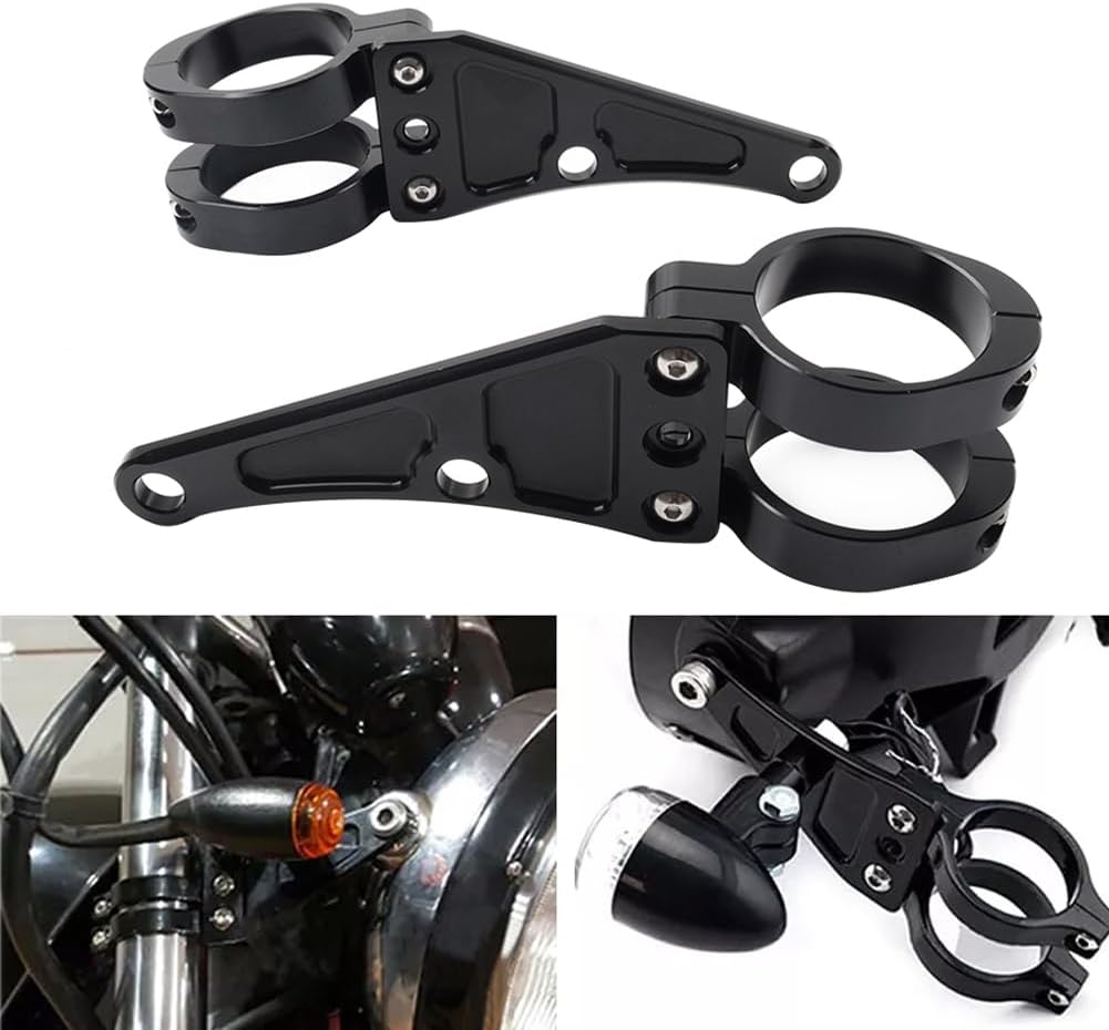 Fitment:Universal for the motorcycle with 37mm-58mm diameter fork tubes, just like: For HONDA, for Kawasaki, for Suzuki, for Yamaha, for Norton, for BSA, for Ducati, and for Harley, etc.Specification:Material: AluminumColor: Black Fork Diameter: 37mm/41mm/45mm/49mm/54mm/58mmFeatures:Made of material, durableEasy to install and removeSimple upgrade to make your motorcycle stand out!Simple to replace: Easy to install, no installation instructions.Black solid mount kit is to replace rubber bushings and cap washerspackage:1 Pair of Motorcycle Headlight Mount Bracket