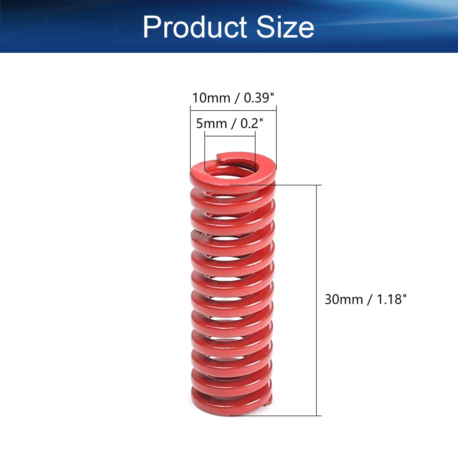 Is a professional supplier of various hardware products. There are a variety of different sizes and different colors of mold springs in the store. Each color represents a different load-bearing load and is suitable for different occasions. We believe that higher quality and lower cost can help our customers save time and money. Please confirm the product size when purchasing. Mold springs are harder than regular springs, which helps your 3D printer be more stable when printing.Generally speaking, there are yellow, blue, red, green, brown springs sorted by different load,die spring is the YELLOW one, which is the lightest load one.Yellow means the load level islighter load;Blue means the load level is light load;Red means the load level is middle load;Green means the load level is heavy load;Brown means the load level is overweight load.Unscrew the adjustment knobs from the bottom of your print bed.And replace those stock springs with these new ones.Screw the adjustment knobs back into the print bed with these new springs.Then you're free to go! Level your bed and keep on printing.These springs may seem trivial, but the springs used on 3D printers can improve print quality and stability. Rectangular Section, strong, keeps print bed level better. The heatbed springs are well suited for high stress applications, but also suitable for various of other applications. Compatible with most 3D Printer Bed. QUICK AND EASY INSTALLATION Die Spring Outstanding Performance Application Feature