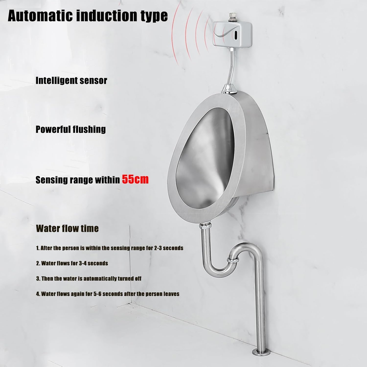Product features: - High efficiency commercial urinal has a simple, lightweight and luxurious appearance. - No need to touch the urinal, clean and hygienic, avoiding the embarrassment of forgetting to flush the toilet. - The surface combines brushing technology and anti-fingerprint coating, which is scratch resistant and can be used with confidence. - For traditional, casual and professional environments, it complements your bathroom. Product Description - Product Name: Stainless Steel Urinal - Material: 304 stainless steel. - Surface process: Wire drawing process - Drainage method: floor tier/wall row - Water inlet method: Hidden water inlet - Installation method: Hanging - Colour: silver. - Dimensions: 46 x 30.5 x 23 cm/18.1 x 12 x 9 inches. It is very suitable for busy public spaces, such as schools, hospitals, train stations and other renovations. Projects. Precautions: 1. The above dimensions are measured by hand. There may be 1-2 cm error. Thank you for your understanding. 2. Due to the inconsistent calibration of the monitor, the colour of the product shown in the photos may be slightly different from the reality. Please refer to the actual product. 3. Any questions, please contact us by email. We will reply you within 24 hours and provide you with a comprehensive service.
