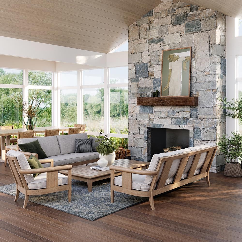 The Thermastone 60-in Classic Concrete Mantel Shelf is non-combustible, fire-proof, and heat-resistant, ensuring peace of mind when using above your fireplace in outdoor and indoor settings. Despite its sturdy construction, this fireplace mantel shelf boasts a lighter weight compared to other concrete shelves, making installation a breeze for a single person. The realistic wood grain texture provides an authentic touch, seamlessly fitting into traditional and mid-century decor. With low maintenance requirements in comparison to natural wood or stone, this mantel shelf is designed for ease of use and durability. The trademark ProCoat coating process adds heavy-duty protection against the elements, making it non-chalking and resistant to disintegration over time unlike MGO and Poly-resin mantel shelves. Elevate your space effortlessly with this easy-to-assemble, stylish, and lightweight concrete mantel shelf.