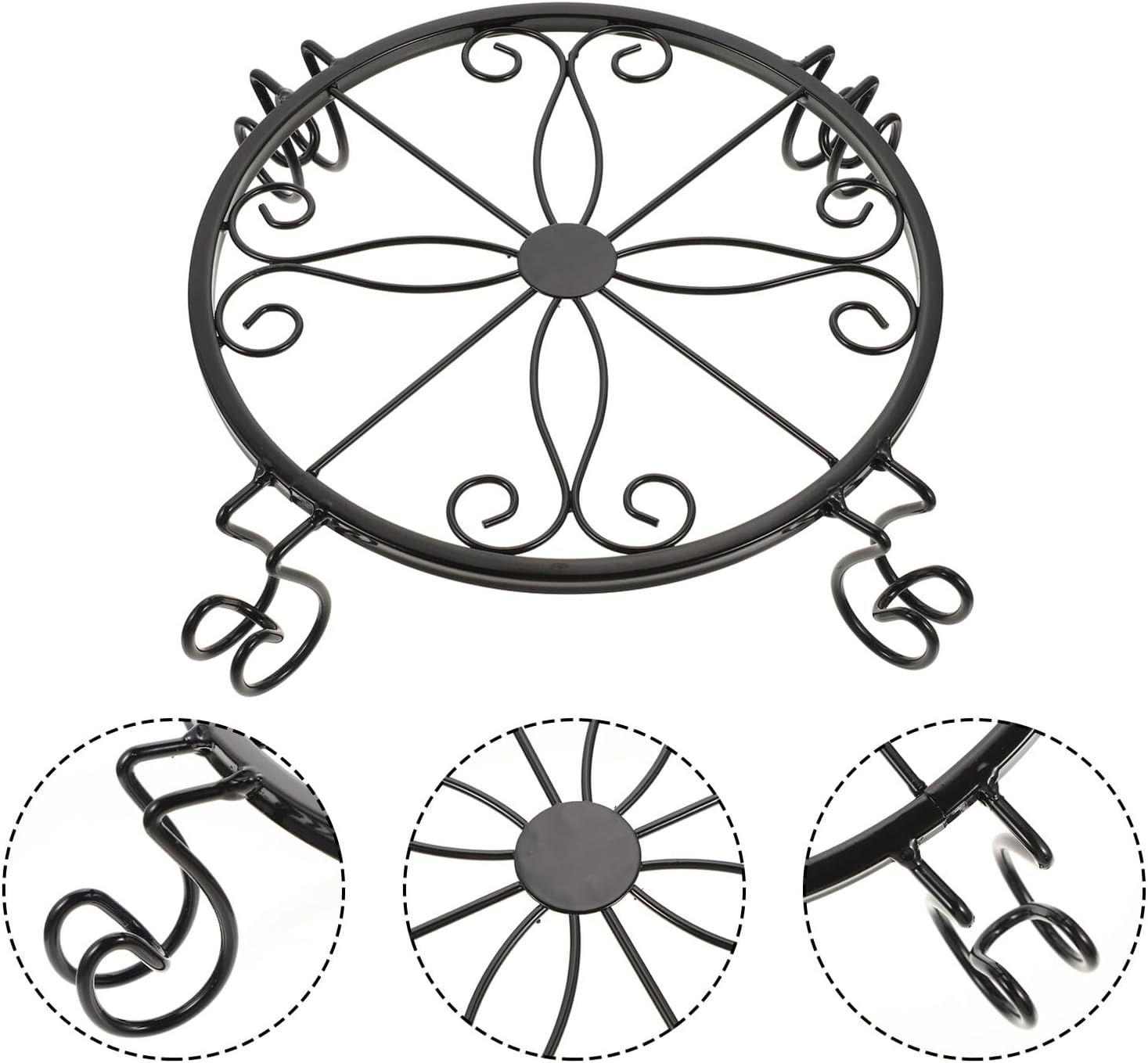 Package List 3 × Metal Plant Stands Features -Product Info:Iron flower stand -Color:Black -Material:Iron -Size:30.80X30.80X6.50cm/12.10X12.10X2.55in - It comes with a sturdy structure, designed with supporting points to make the flower pot stand stably flower pot stands outdoor. - Perfectly work as a display stand for plant pots indoor garden, living room and corridors garden flower stand. - The flower pot stand is made of good iron, and the plant stand is sturdy and durable iron flower rack. - The simple appearance is suitable for a variety of , also a nice decor Flower Pot Metal Base. - To show your style, you can put indoor flowerpots, small aquatic fish tanks flower pot holders.Goods Descriptioniron flower pot holder Lightweight and compact design and simple color make them look beautiful, suitable for holding bonsai and other flowers, adding more natural beauty to your space.metal flowerpot stand The flower pot stand is made of iron material is well-made and sturdy, and its retro and simple appearances fits for many plants
