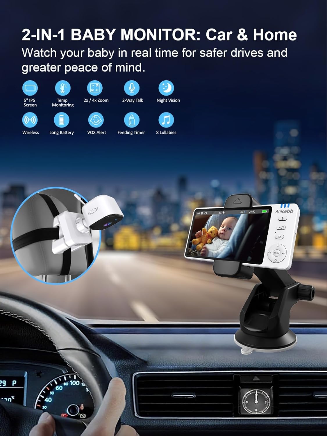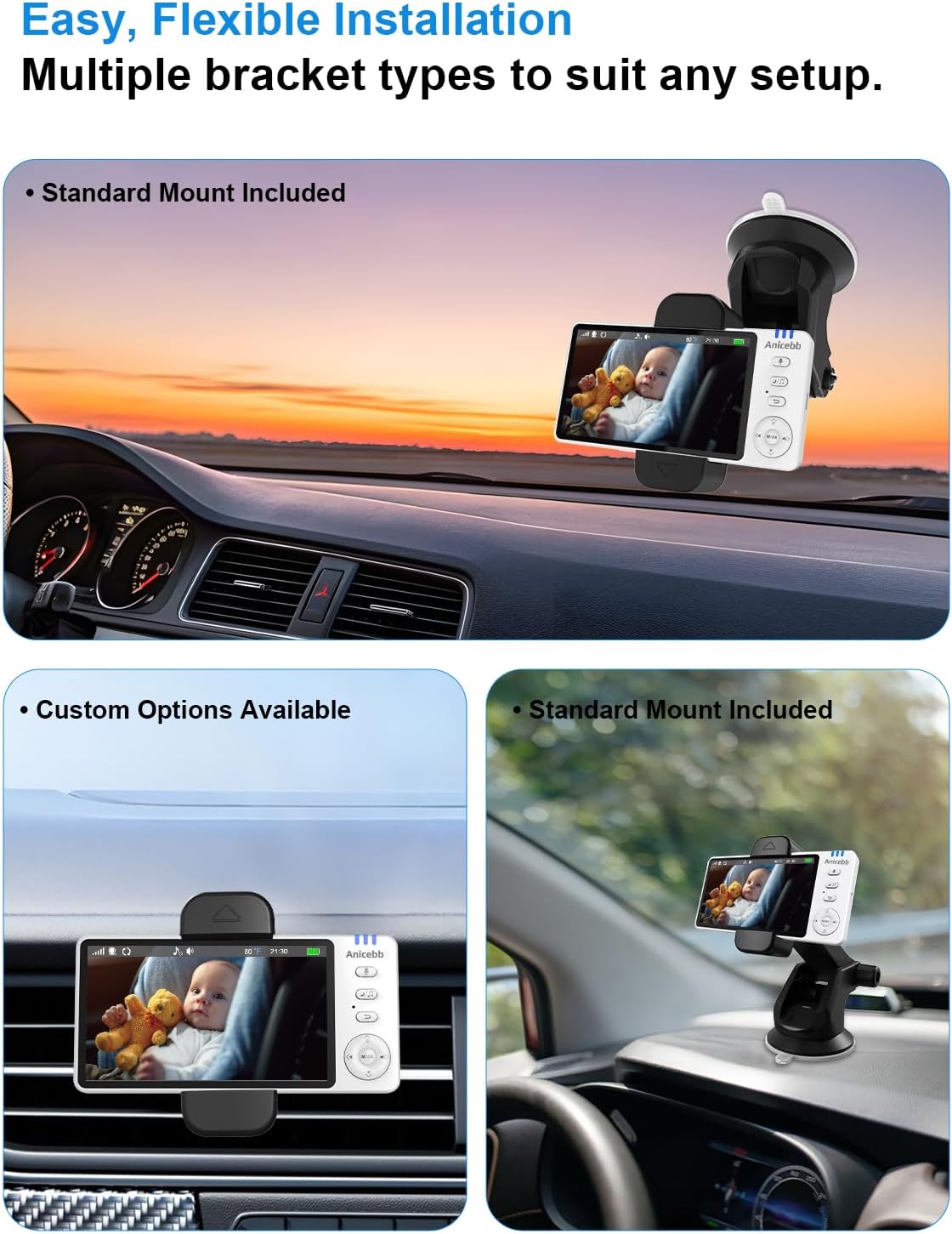 | BuiltIn Media | Camera Bracket&Charging Cables×2, Car Charger&Adapter, HD Wireless Camera&5" Parent Unit Display, Instruction Manual, Suction Mount&Air Vents Clip |
