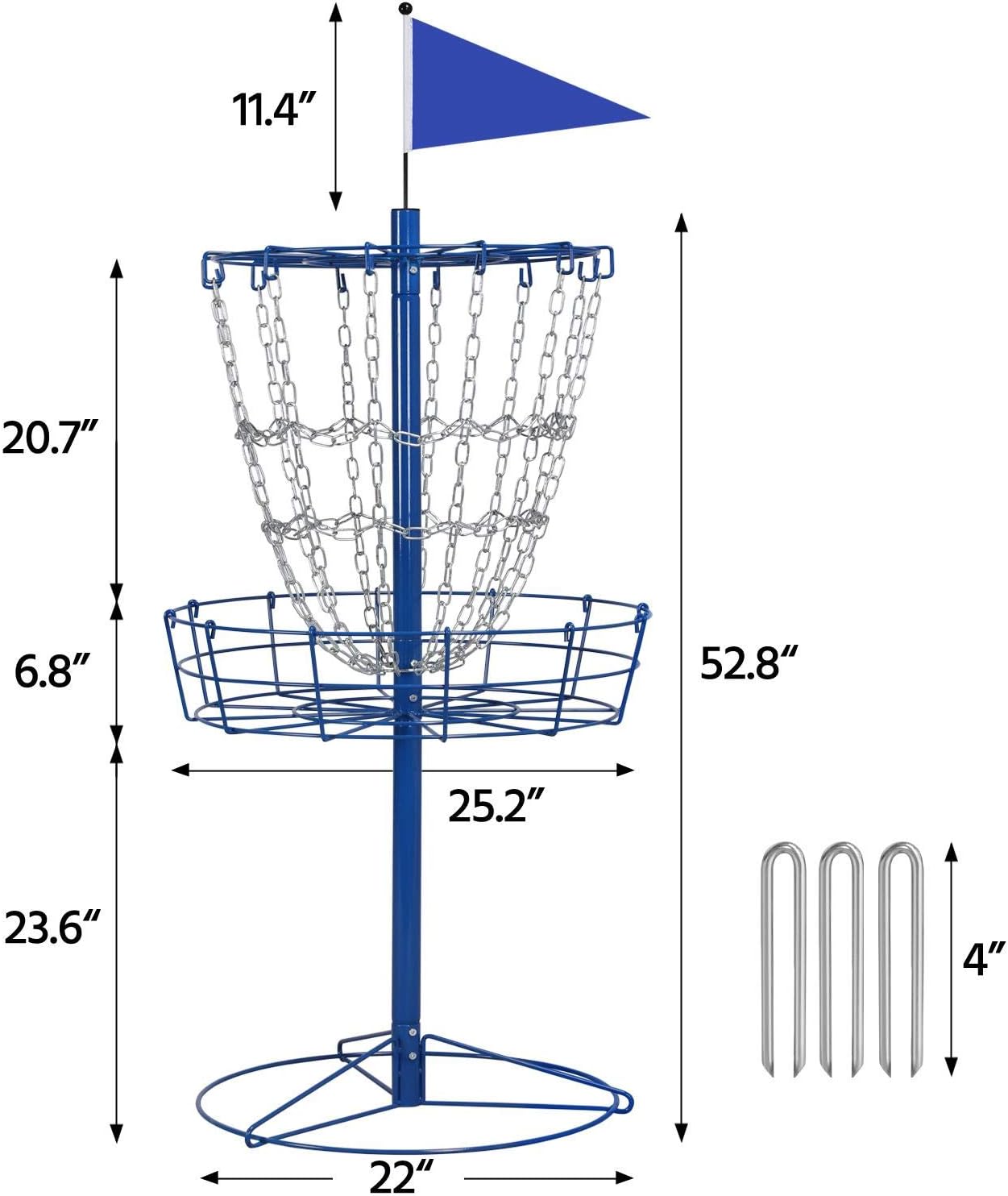 If you're stuck on ideas for family-friendly activities, why not try disc golf? It's a great way to have fun and get some fresh air, requiring no special skills! All you need is a set of flying discs and a sturdy disc golf target. Our portable and easy-to-assemble basket is ideal for playing in the backyard, at the park or you can even load it up in the car trunk for family trips. This sturdy disc golf basket is made to last with its heavy-duty metal frame and galvanized chains. You can count on it to withstand any weather and provide many hours of fun! It's built to the standard height so both pros and beginners can practice and ideal their flying disc skills. Get ready to improve your technique in no time!