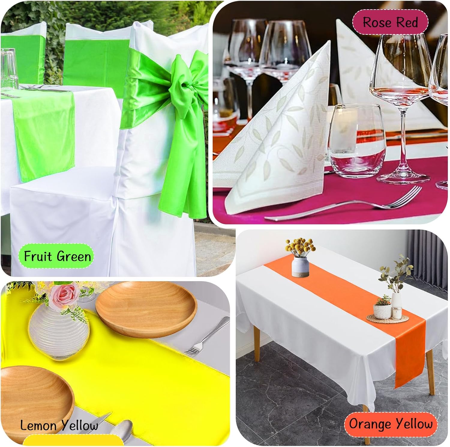 | Included Components | Satin Silk Table Runners |
