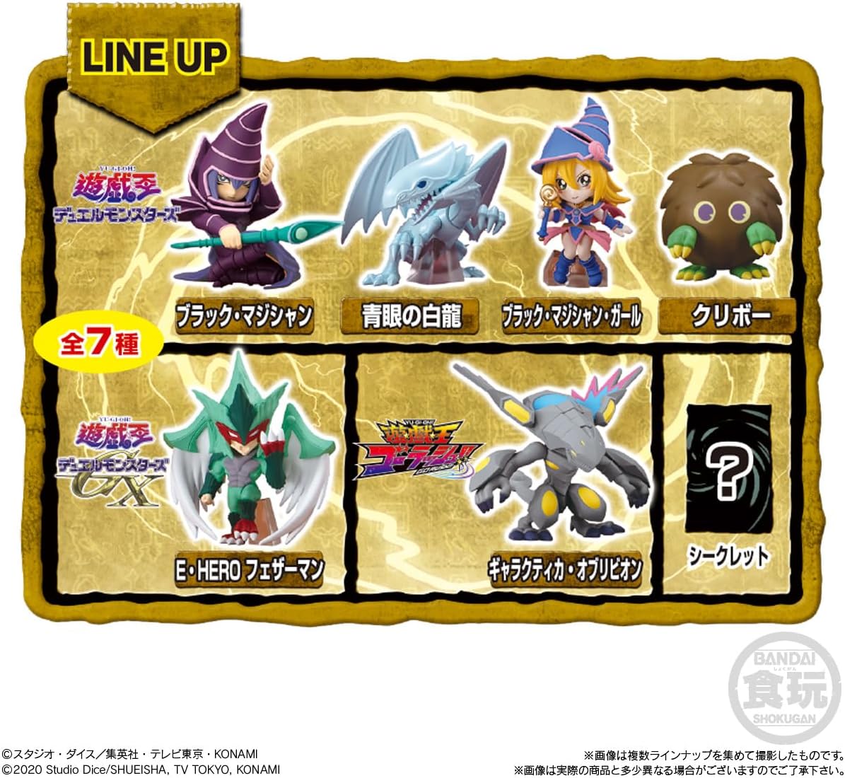 The Yu-Gi-Oh anime series comes back to life in the palm of your hand in a box of 10 Anime Collection figures, including several of your favorite characters. Possible figures include the Dark Magician, Blue-Eyes White Dragon, the Dark Magician Girl, Kuriboh, Elemental HERO Avian, Galactica Oblivion, and a secret seventh figure.