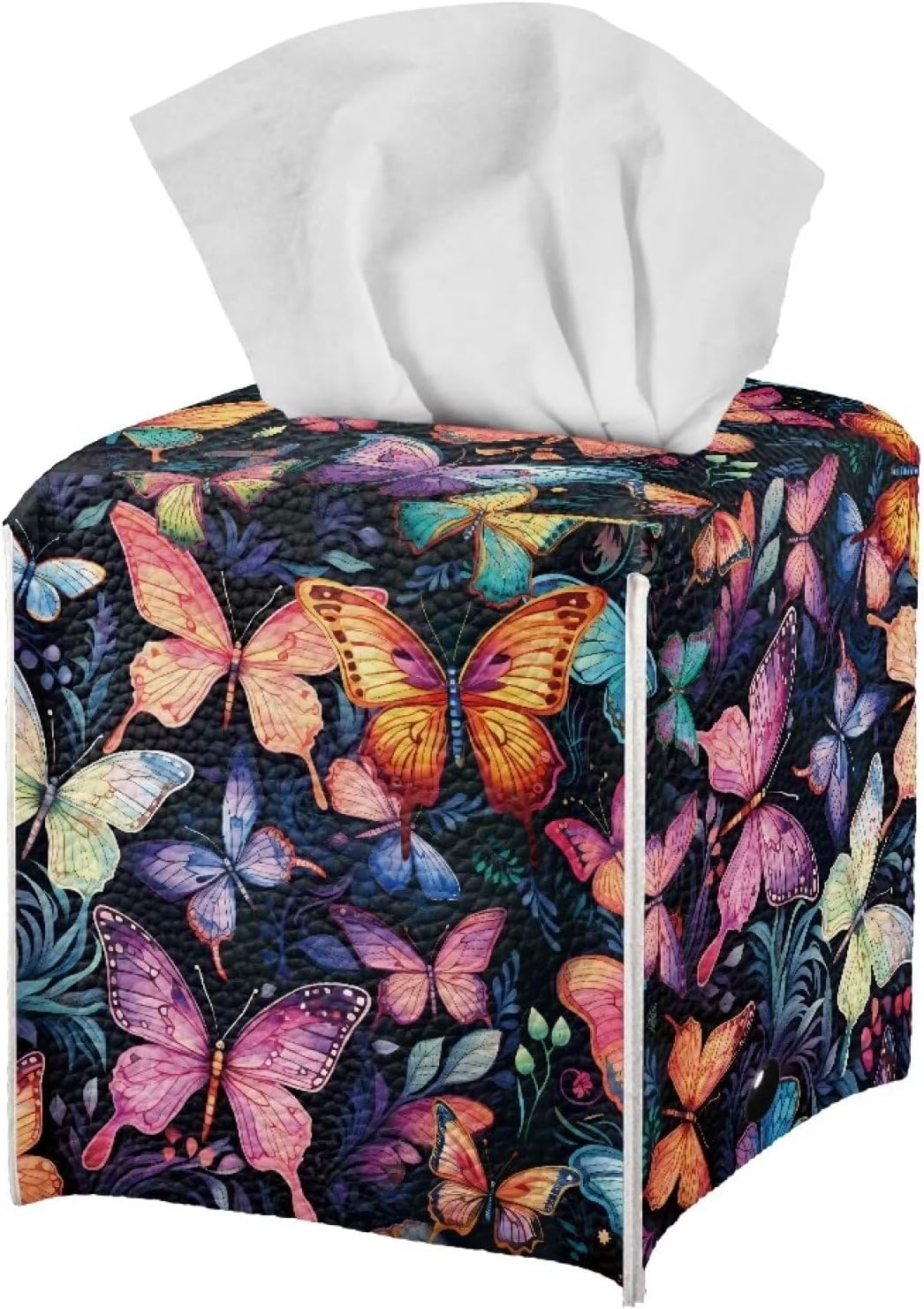 Product External Size:Our tissue box holder is 5.1 "L * 5.1 "W * 5.5 "H, with square design, fits all popular square tissue boxes, can be conveniently placed in any room of your home or office Simple and generous rectangular tissue box is perfect for most home décor, there are beautiful and colorful patterns that not only match perfectly with all kinds of furniture, but also add more modern atmosphere to your home This tissue box pays great attention to details, the tissue box cover is made of double-sided thickened PU leather, which makes this leather tissue box fashionable and full of texture, waterproof and odorless, soft and strong, not easy to be deformed or torn, and can be wiped with a wet towel when it is dirty Our tissue box is made of PU leather, the fabric is soft and comfortable, the grain is fine and clear, the whole is glossy and textured; it can cover the unsightly tissue box and add a unique decoration to your home/car/office This tissue box is suitable for bathroom, living room, car, office, dresser, nightstand, coffee table, kitchen and other places, a variety of patterns personalized style, make the house decoration more fashionable and comfortable