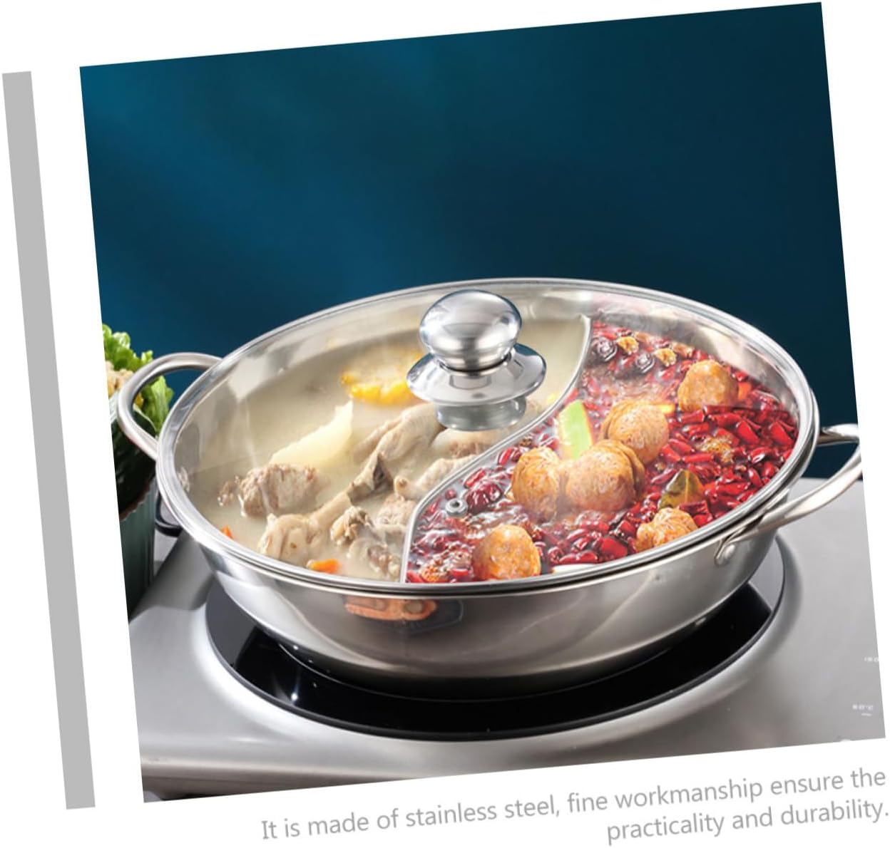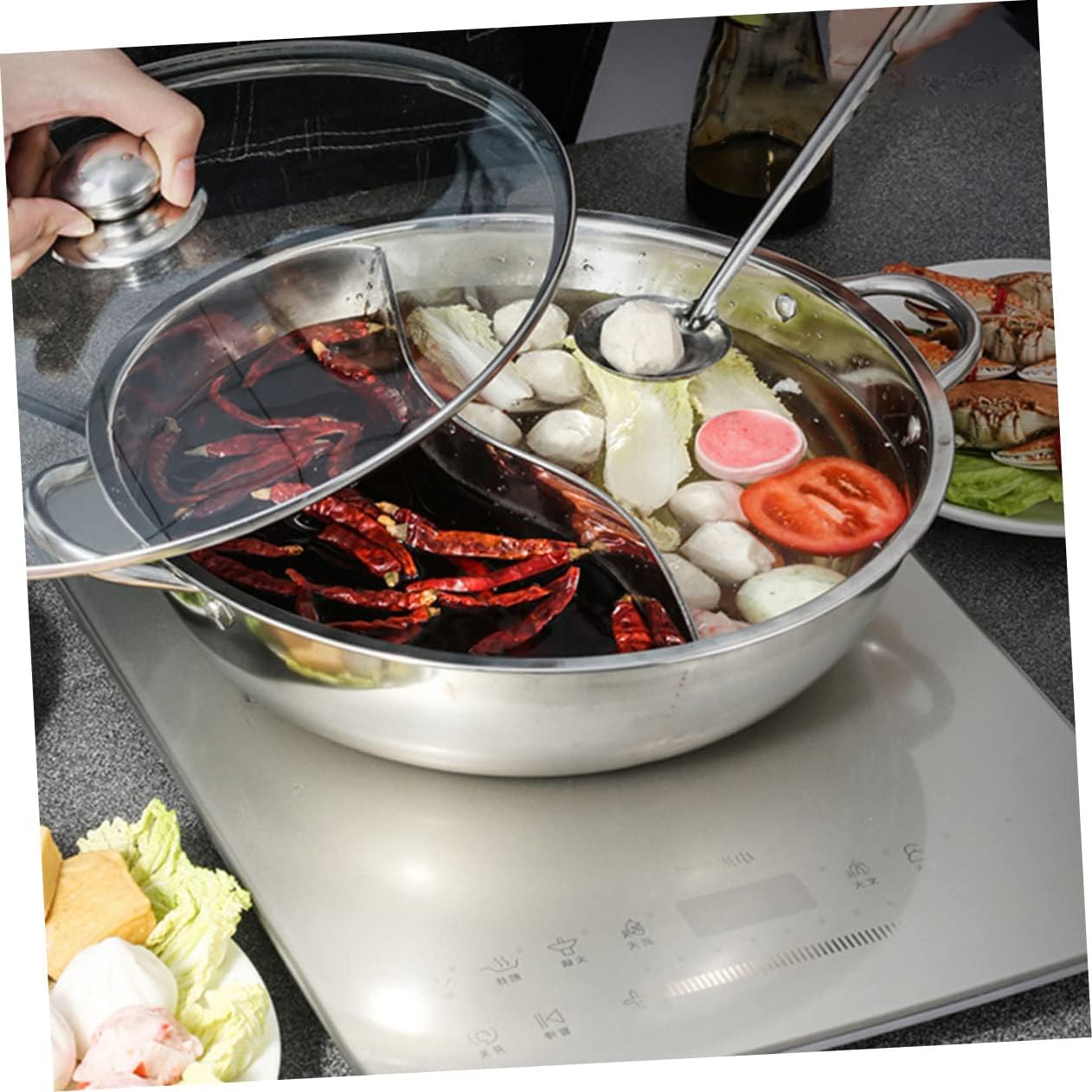 Package Include 1 Pot Cooker with Cover Characteristics -Size:34.00X34.00X12.00cm/13.36X13.36X4.72in hot pot -Color:Silver Divided Hot Pot -Material:Stainless steel, glass Kitchen Hot Pot -The Hot Pot is suitable for induction, stoves, gas, cooktop, Hot Pot is easy to use, perfect for party use induction hot pot. -Manufactured with stainless steel and glass material, and enough to use home hot pot. -Lightweight and , bring you a warm feeling in cold weather. It also can be used easily divided pot for cooking. -The stainless steel hot pot is very easy to clean, comes with thickened glass lid, suitable for family, friends gathering and hot pot restaurant induction pot. -The divider design allows you to cook hot pot of different flavors, can meet different taste at the same time induction cookware pot.Goods Descriptiondivided stockpot for cooking It is suitable for family, friends gathering and hot pot restaurant.hot pot divider Suitable variety of stoves, such as gas stoves, induction cookers, electric ceramic stoves, etc. pot With this hot pot cooker, you can spend happy time with your family or friends.cooking pot divider This Hot Pot is made of glass and stainless steel materials, and to use