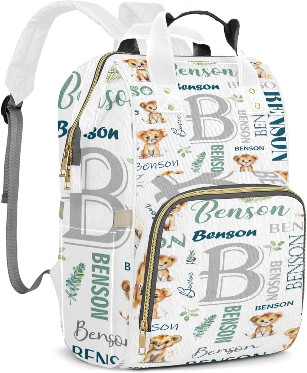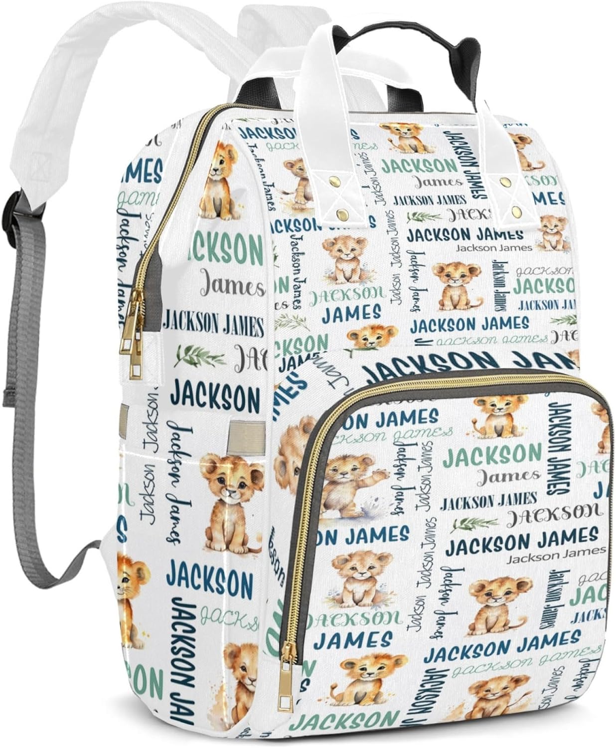 Stay organized and stylish with our Personalized Diaper Backpack, featuring a delightful Lion theme and custom name option. Crafted from durable Oxford cloth, this diaper bag is designed for both functionality and personal flair. The customizable name feature makes it a thoughtful gift for new parents, adding a unique touch to their daily routine.Spacious and Organized DesignWith dimensions of 10.8" x 7.8" x 15.7", this diaper backpack offers ample storage space for all your baby essentials. The built-in zip pocket and side pocket help keep everything neatly organized, from diapers and wipes to extra clothes and toys.Insulated Front Pocket for BottlesThe front insulation pocket ensures that baby bottles stay warm or cool as needed, making it easy to manage feeding times while on the move. This practical feature is a must-have for busy parents.Comfortable and Durable for Everyday UseMade from high-quality Oxford cloth, this diaper backpack is built to withstand daily use. The nylon decompression handle adds comfort, allowing for easy carrying throughout the day, whether you’re heading to the park or running errands.Quick Access with Two-Way ZipperThe smooth two-way zipper ensures you can easily access the contents of your bag, making diaper changes and feedings effortless, even in busy moments. Designed for convenience, this diaper backpack helps make parenting on the go a breeze.Choose this Lion-themed, personalized diaper bag for a combination of practicality, style, and personal touch, perfect for any parent looking to stay organized and chic.