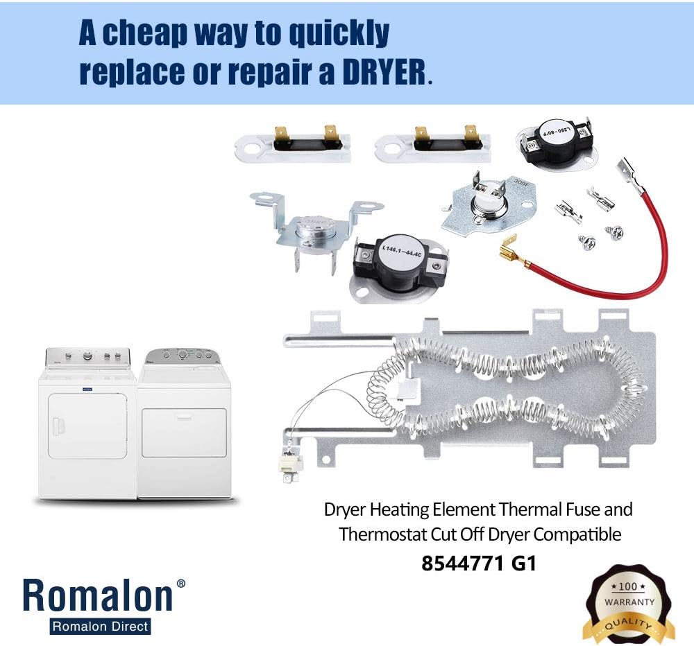 | Included Components | 8544771 heating element, 279816 Thermostat Cut-off, 279973 thermal fuse, 3392519 thermal fuse |